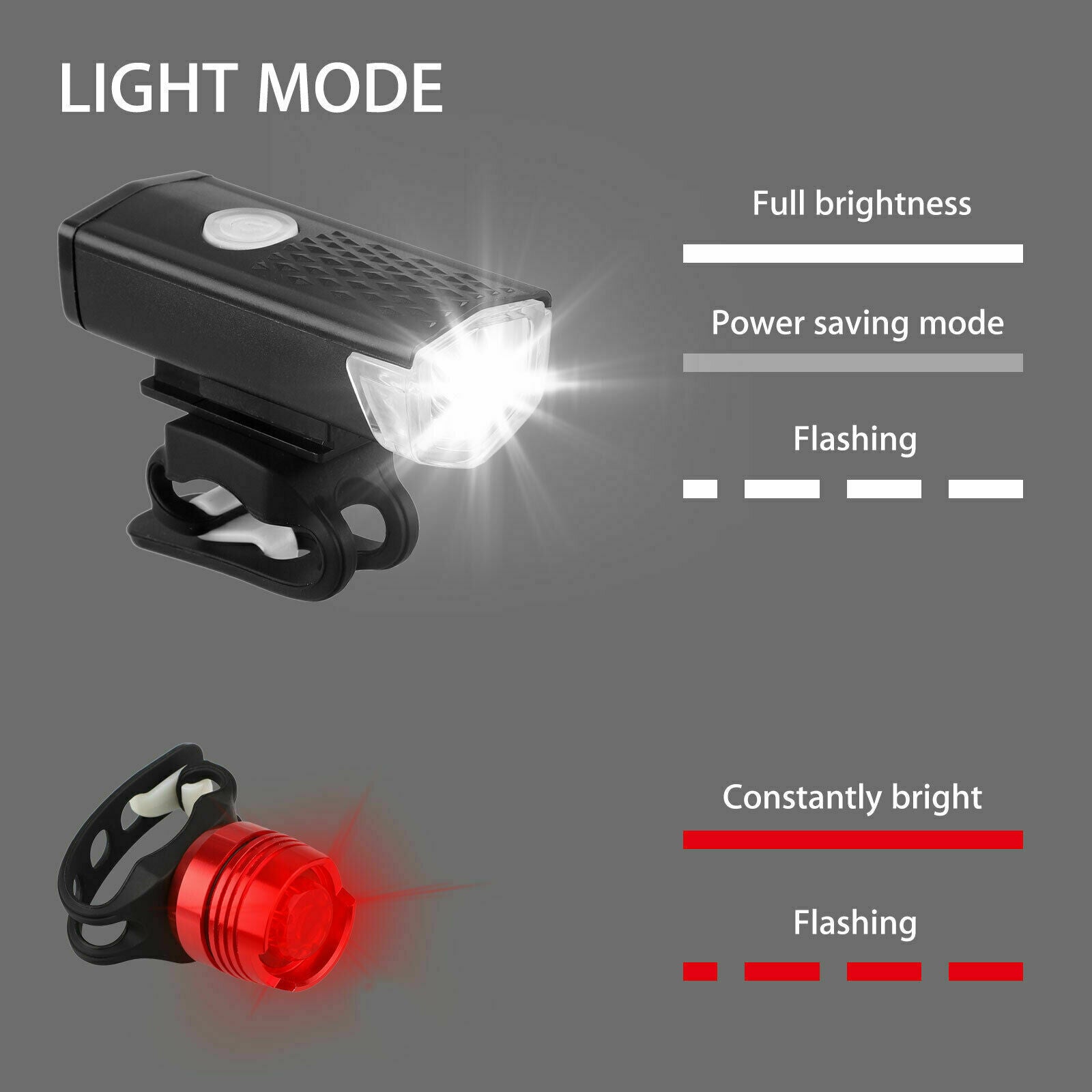 The Headlight (Front Light) is USB Rechargeable The Taillight (Back/Rear Light) is Battery Operated